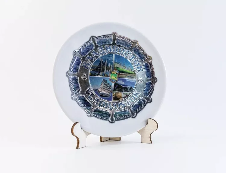 Тарелка декоративная "Штурвал Владивосток" 10см