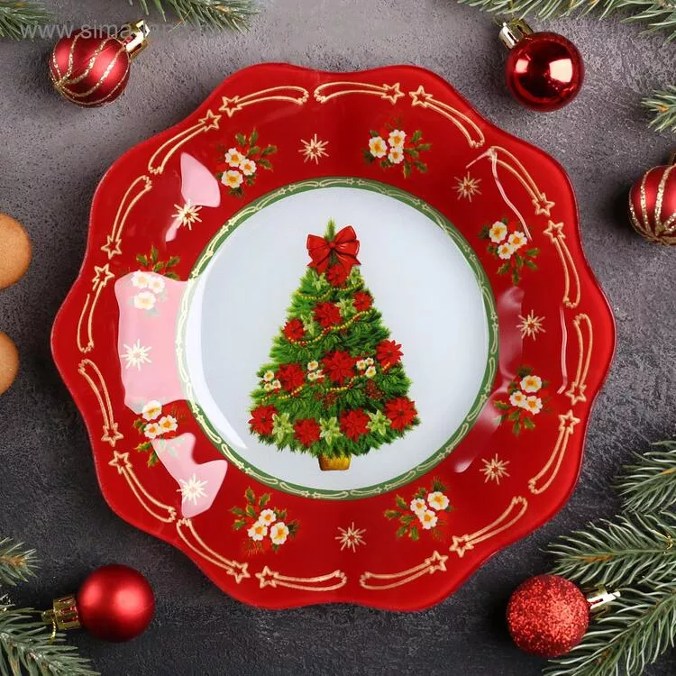 Тарелка десертная "Новогодняя ель" 20см