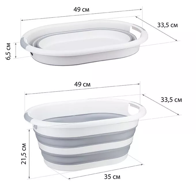 Таз овальный складной "Флекс" 17,5л 33,5х49х6,5см, цв.серый