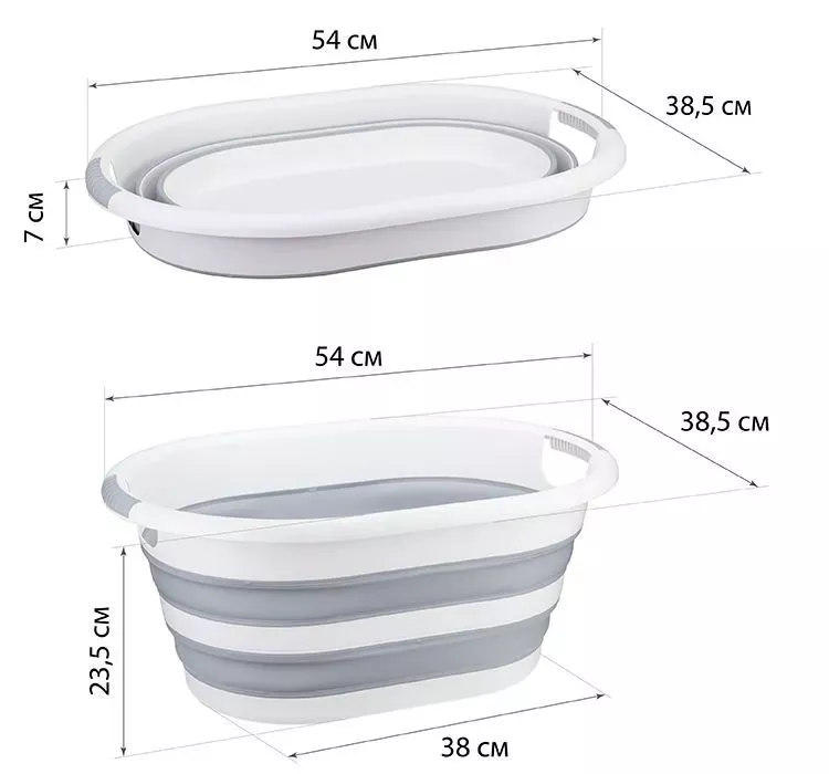 Таз овальный складной "Флекс" 25л 54х38,5х7см, цв.серый