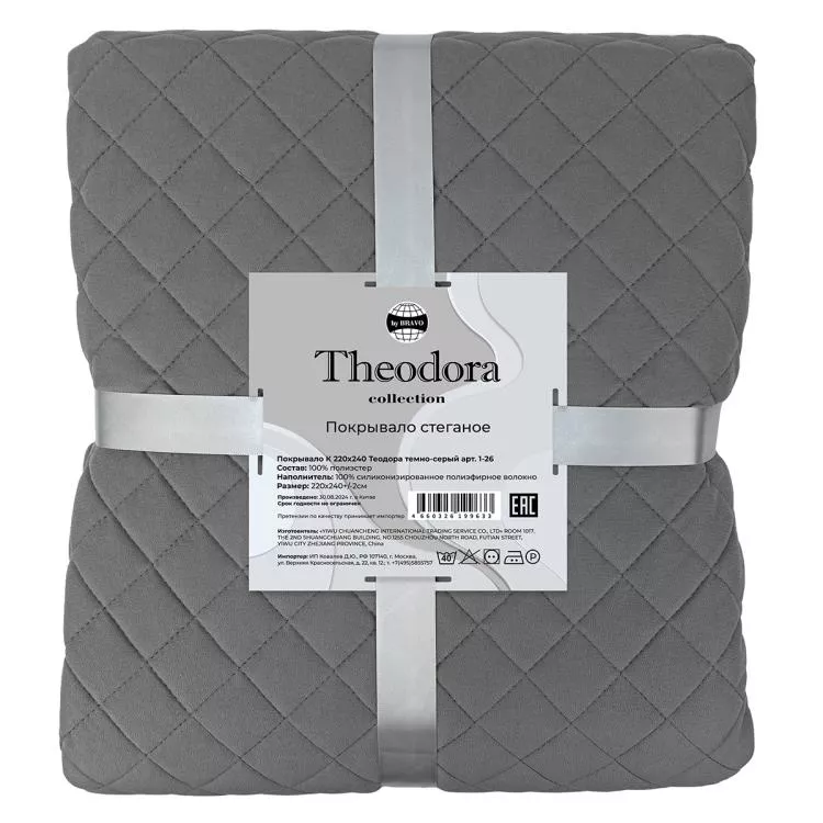 "Teodora" Покрывало 220х240см, цв.темно-серый