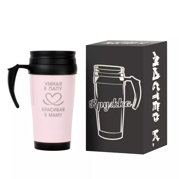 Термокружка "Умная в папу - красивая в маму" 450мл, с ручкой