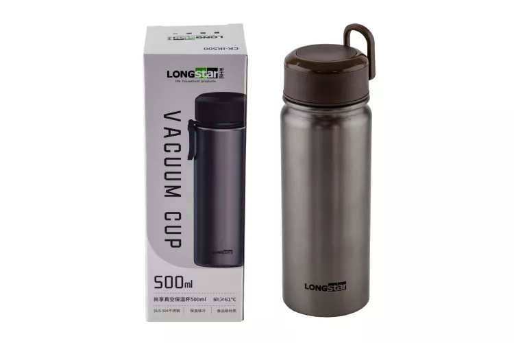 Термос-бутылка с ручкой 0,5л, цв.коричневый CK-IK500