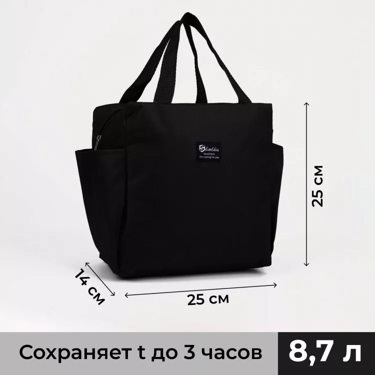 Термосумка на молнии с ремнем 8,7л, цв.черный