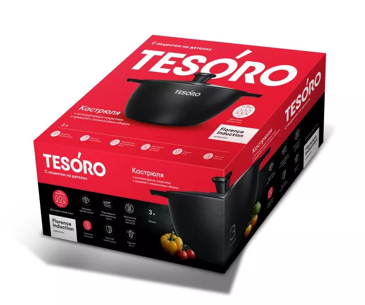 "TESORO" Florence Induction total dark" Кастрюля 3л, с крышкой