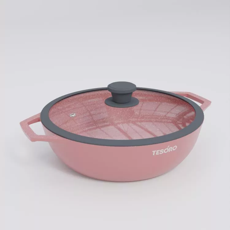 "TESORO" Florence Induction total pink" Жаровня 3л, h 8см, с крышкой