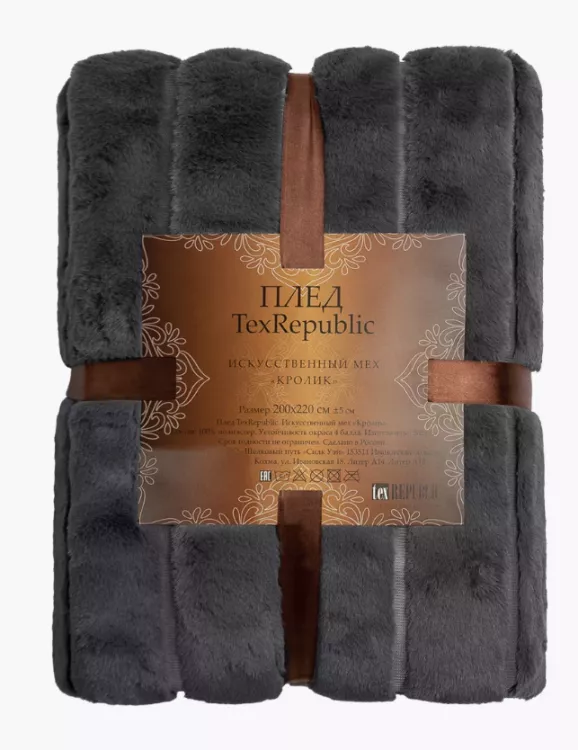 "Texrepublic" Плед "Кролик" 220х200см, цв.темно-серый