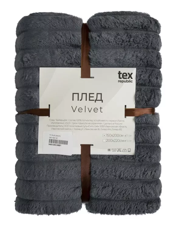 "Texrepublic" Плед "Velvet" 200х220см, цв.серый