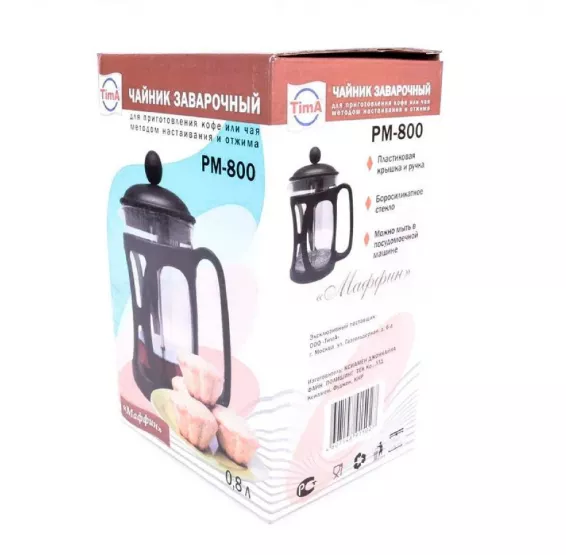 "TimA" Маффин" Френч-пресс цв.черный, 800мл
