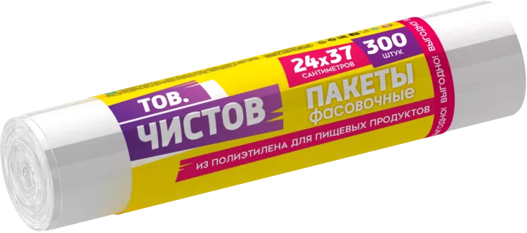 "Тов.Чистов" Набор пакетов для хранения продуктов 24х37см, 5мкм, 300шт.