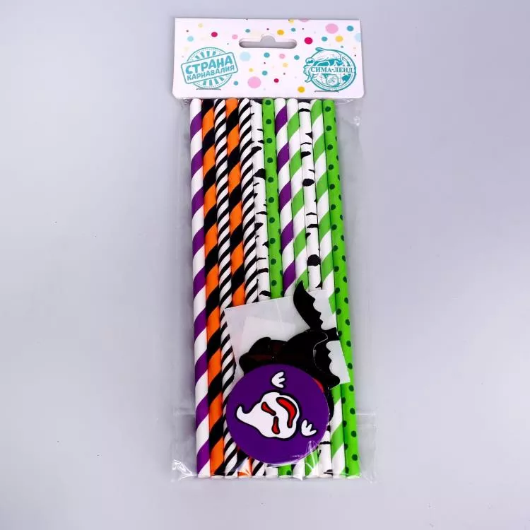 Трубочки для напитков "Хэллоуин" 12шт. 20см, цв.ассорт