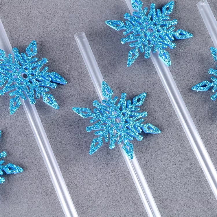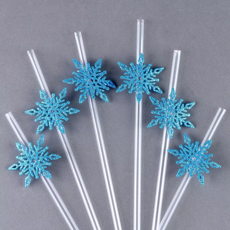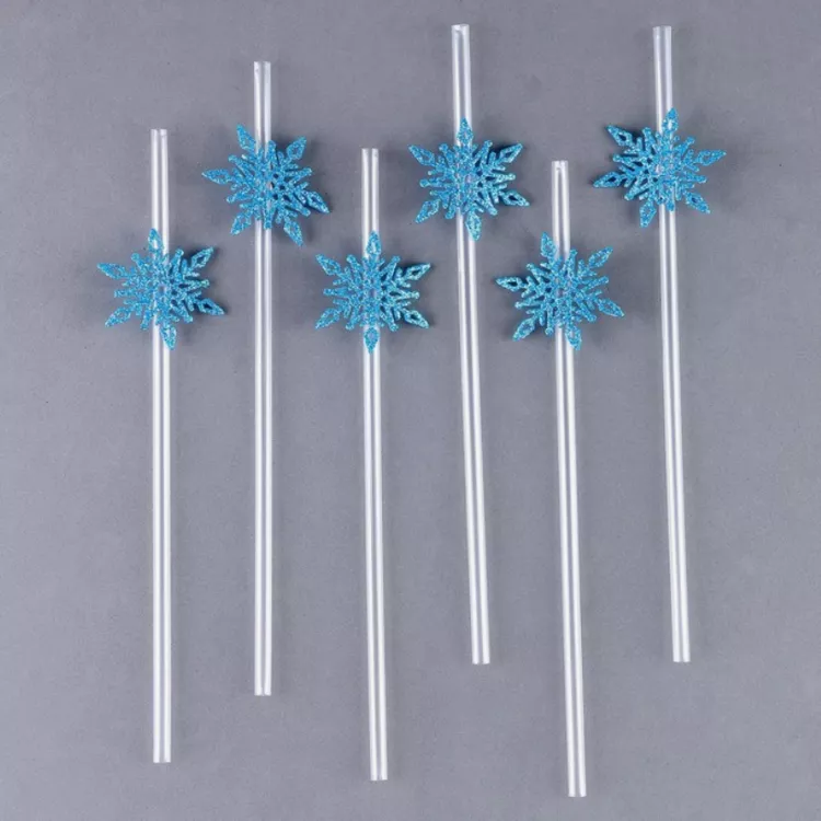 Трубочки для напитков "Снежинки" 6шт, 17см, цв.голубой