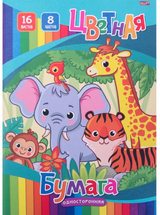 Цветная бумага "Зверушки из джунглей" А5, 16л.
