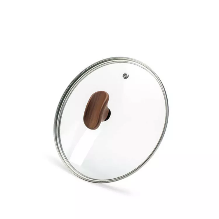 "TVS NATURA" Крышка стеклянная 20см, с металлическим ободком, ручка дерево, низкая