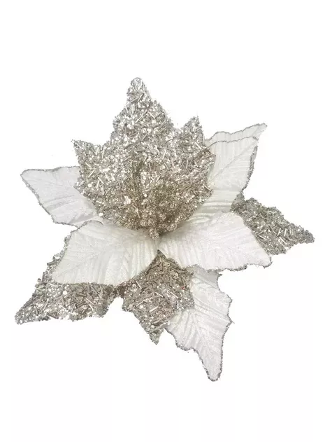 Украшение декоративное елочное "Цветок" цв.серебро 27х27х24см