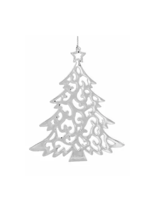 Украшение декоративное подвесное "Елочка резная в серебре" 12см