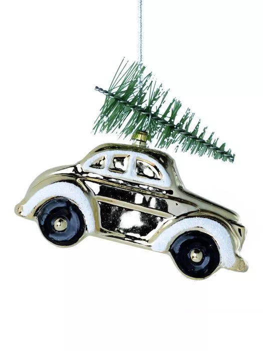 Украшение декоративное подвесное "Машина с елкой" цв.золото 5x14x17,5см