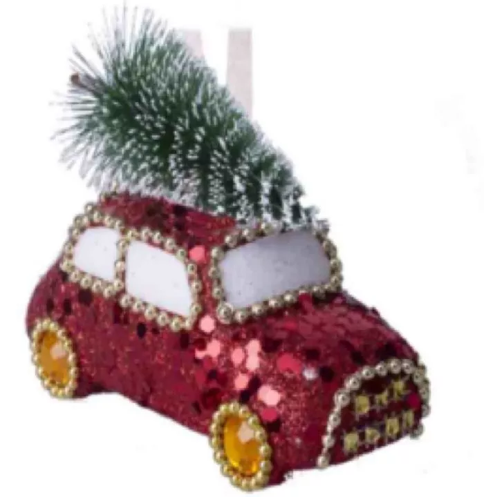 Украшение декоративное подвесное "Машина с елкой" в стразах, цв.красный 5x7,5x10см
