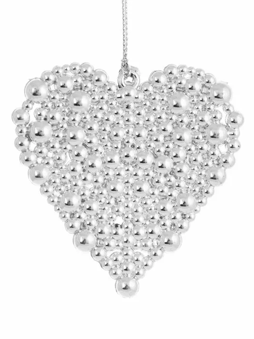 Украшение декоративное подвесное "Сердечко" цв.серебро 8см