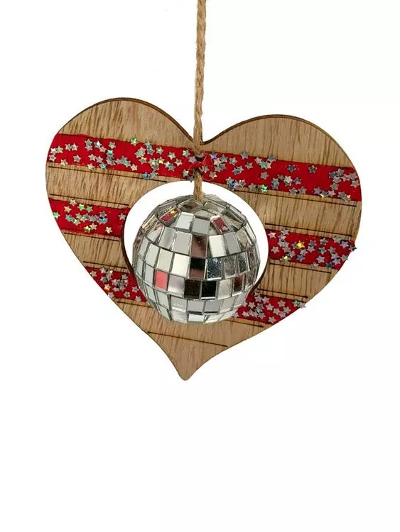 Украшение декоративное подвесное "Сердце с диско-шаром" 8x3х8,5см