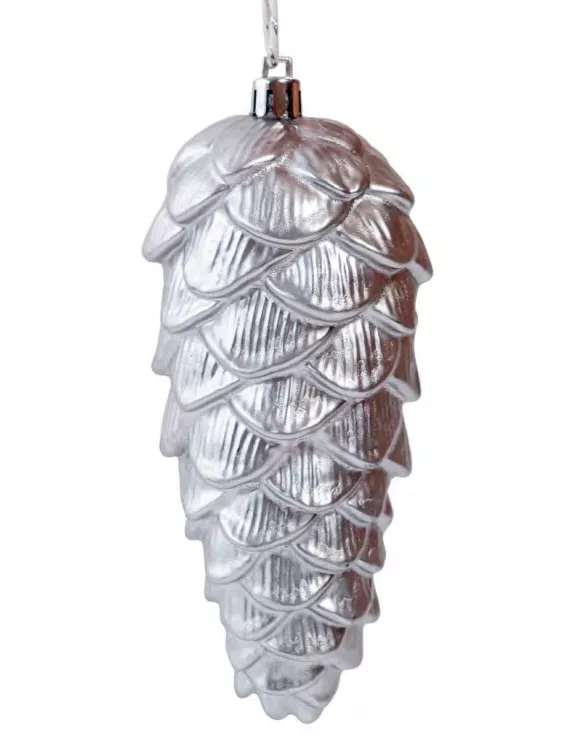 Украшение декоративное подвесное "Шишка" 13,5x6x6см, цв.серебро