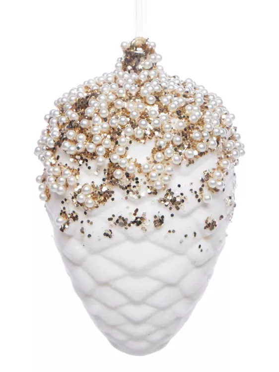 Украшение декоративное подвесное "Шишка в жемчуге" 6,5х6,5х11,5см, цв.белый