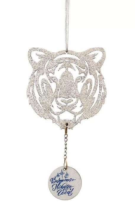 Украшение декоративное подвесное "Тигр" 12x6,5см цв.серебро