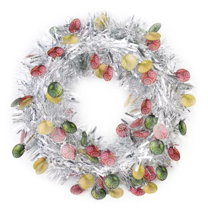 Украшение новогоднее "Новогодний венок с елочными шарами" 40см цв.серебро