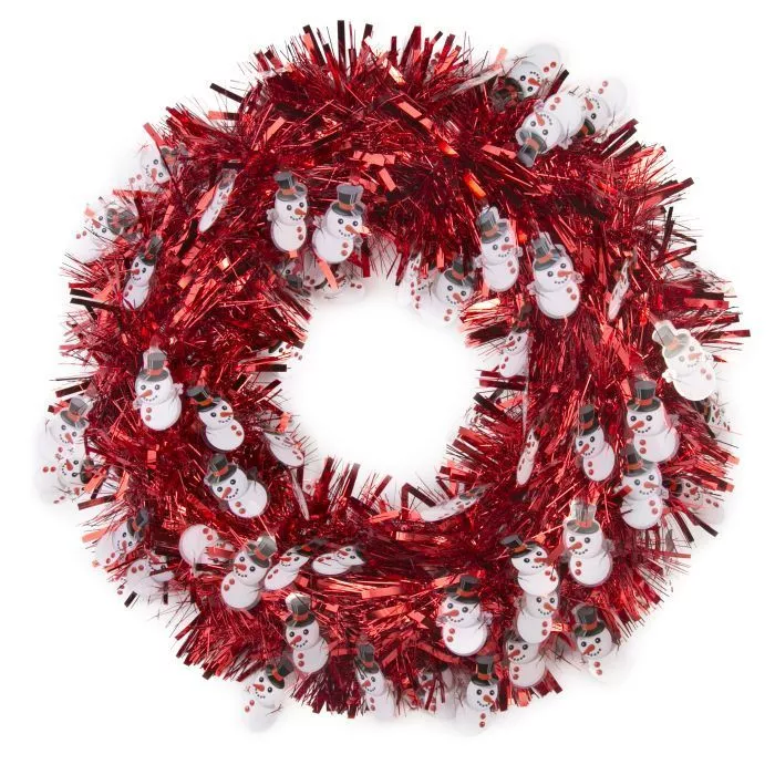 Украшение новогоднее "Новогодний венок со снеговиками" 40см цв.красный