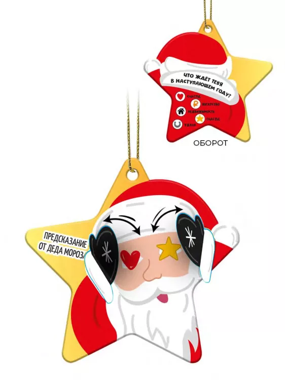 Украшение подвесное "Дед Мороз" с предсказанием 10х9,6см