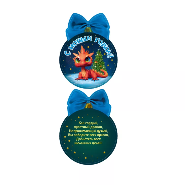 Украшение подвесное "Дракон и елка" с предсказанием 10х8см