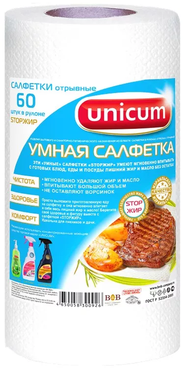 UNICUM Набор салфеток в рулоне "Умная салфетка" 60шт, 24х30см