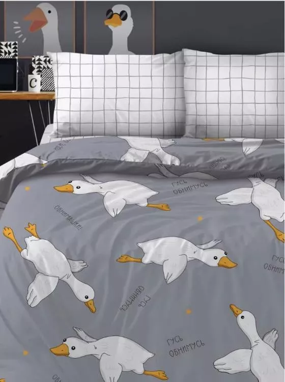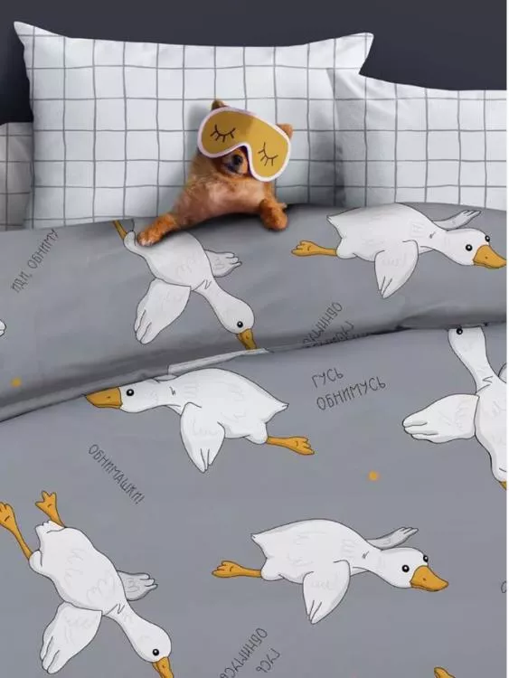 "Uniqcute" Комплект постельного белья "Гусь обнимусь" 2сп, 50х70см, поплин