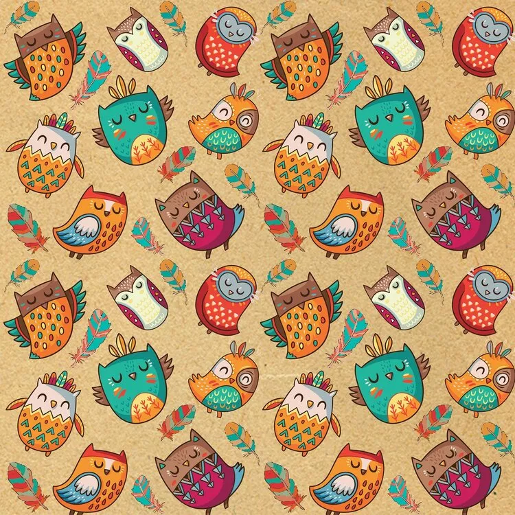 Бумага крафт Милые совы арт.44725 (для сувенирной продукции в листах размером 100х70 см, немелованная, с полноцветным декоративным рисунком, плотность 80 г/м2, свернута в рулончик)
