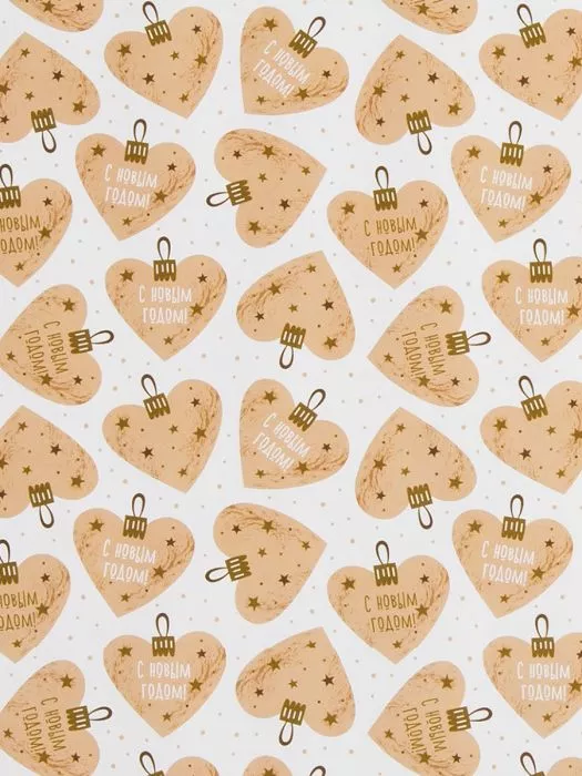 Упаковочная бумага "Новогодние сердечки" 100х70см