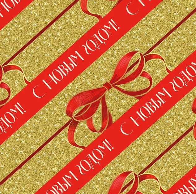 Упаковочная бумага "С Новым Годом! Бантик" 100х70см