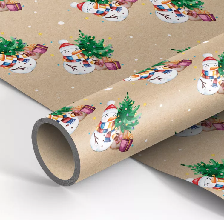 Упаковочная бумага 100*70см, для сувенирной продукции в рулонах, мелованная с одной стороны, с полноцветным декоративным рисунком, плотность 70 г/м2