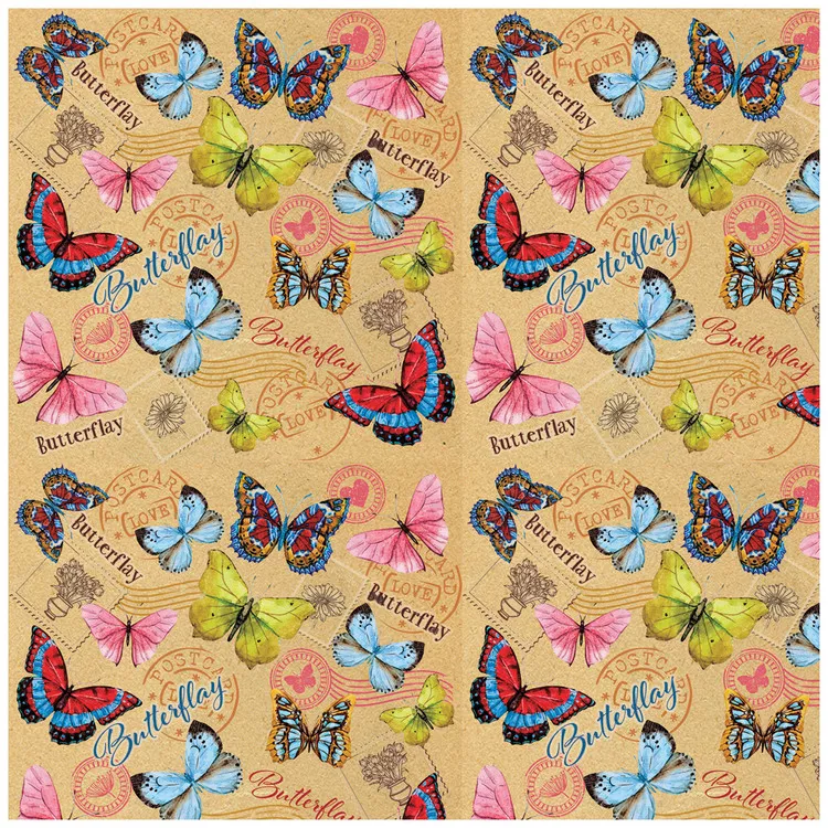 Бумага крафт Тропические бабочки арт.44736 (для сувенирной продукции в листах размером 100х70 см, немелованная, с полноцветным декоративным рисунком, плотность 80 г/м2, свернута в рулончик)