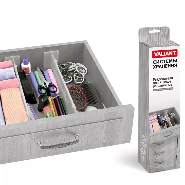 "VALIANT" DRAWER ORGANIZER Разделители для ящиков 2шт 32,6x8,8см, цв.белый