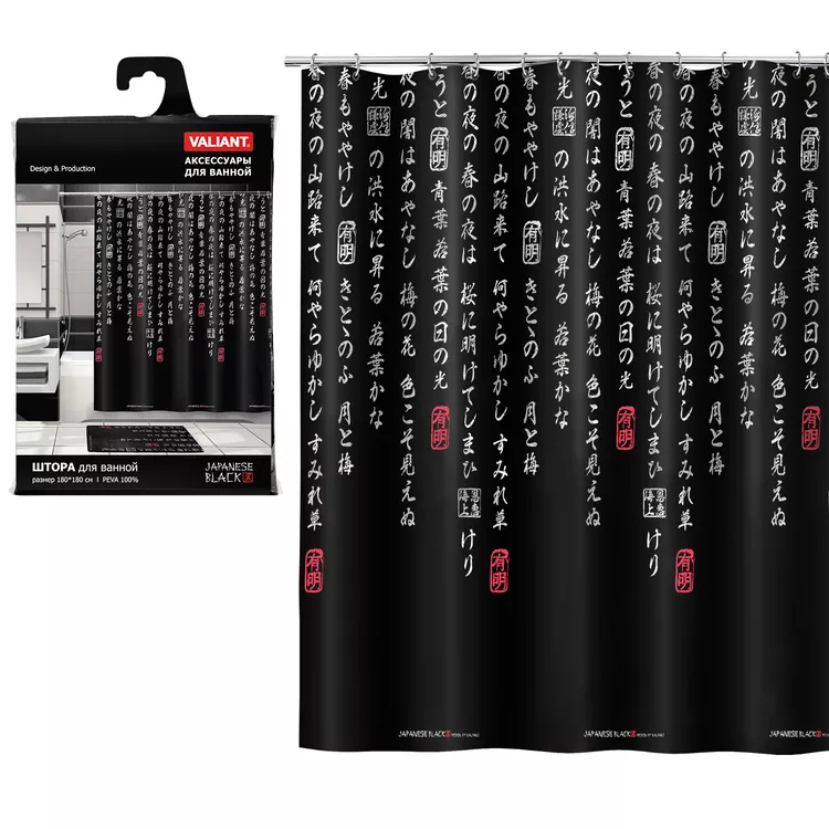 "VALIANT" JAPANESE BLACK Штора для ванной 180х180см