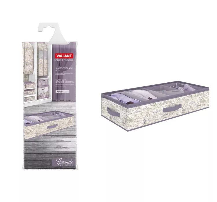 "VALIANT" LAVANDE Кофр для хранения обуви, 4 секций 70х35х15см