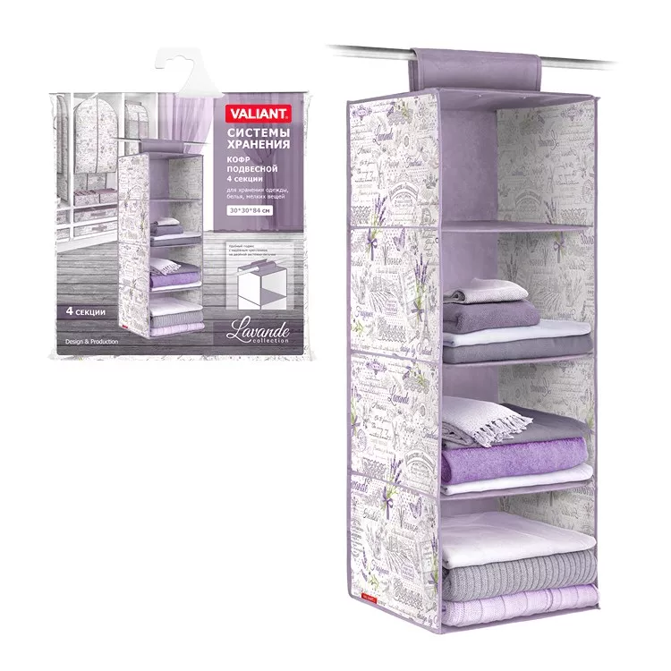 "VALIANT" LAVANDE Кофр подвесной для хранения, 4 секции 30х30х84см