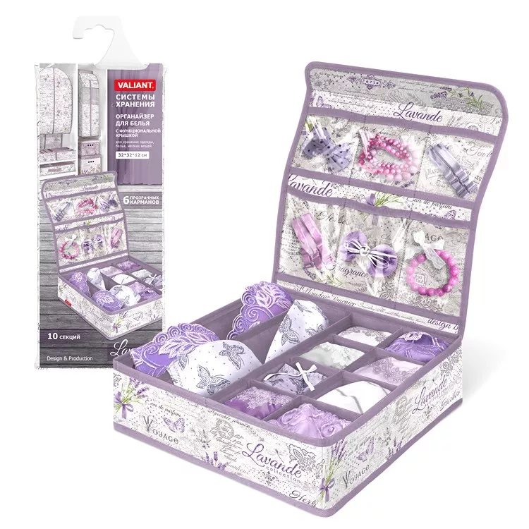 "VALIANT" LAVANDE Органайзер для белья с крышкой на магните, 10секций 32х32х12см