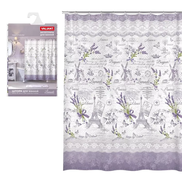 "VALIANT" LAVANDE Штора для ванной 180х180см