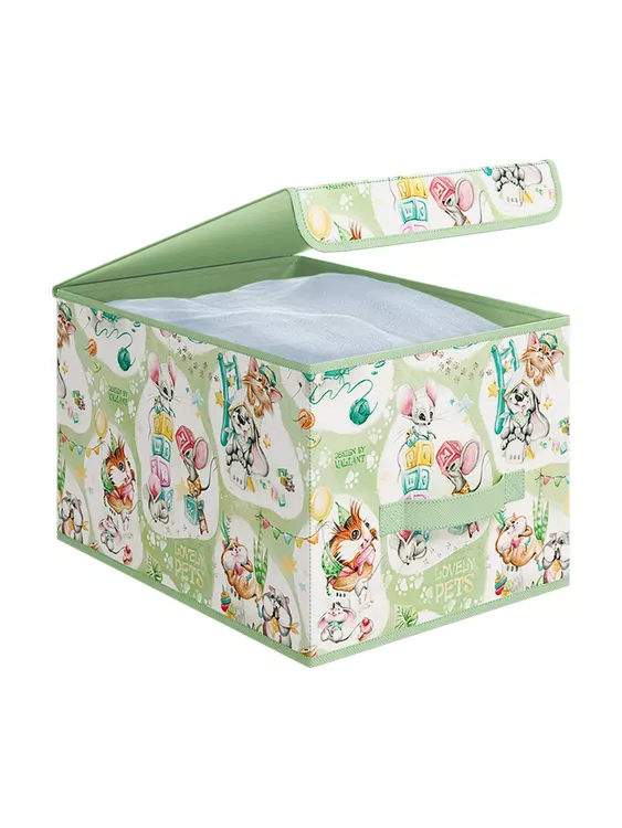 "VALIANT" ЛЮБИМЧИКИ Короб стеллажный с крышкой на магните 30х40х25см, цв.зеленый