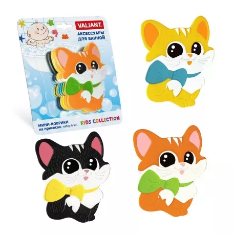 "VALIANT" Набор мини-ковриков "Котенок с бантом" на присосках 6шт