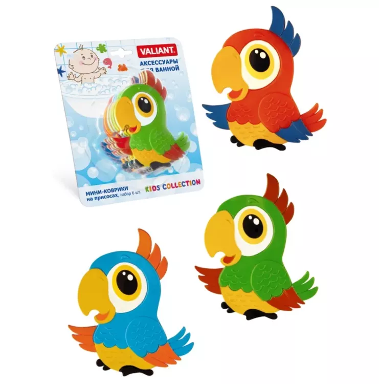 "VALIANT" Набор мини-ковриков "Попугай" на присосках 6шт