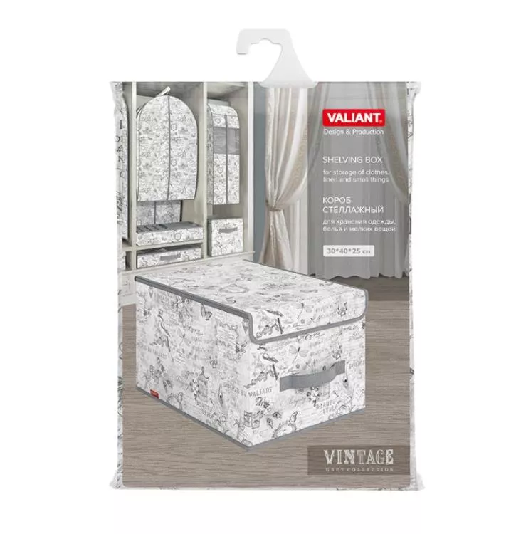 "VALIANT" VINTAGE GREY Короб стеллажный с крышкой на магните 30х40х25см