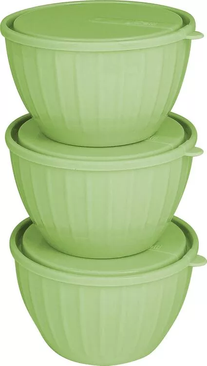 "Vanilla" Набор салатников с крышками 3шт, 0,6л, цв.фисташка
