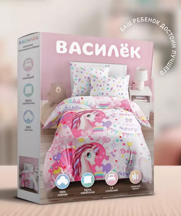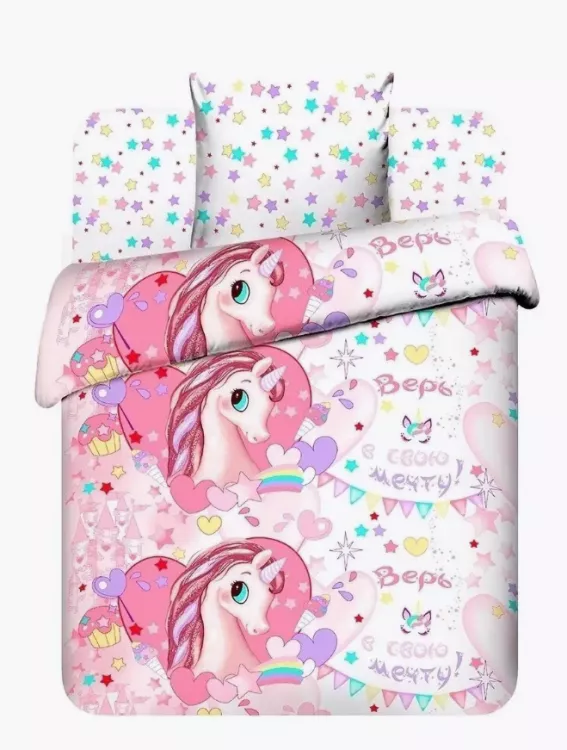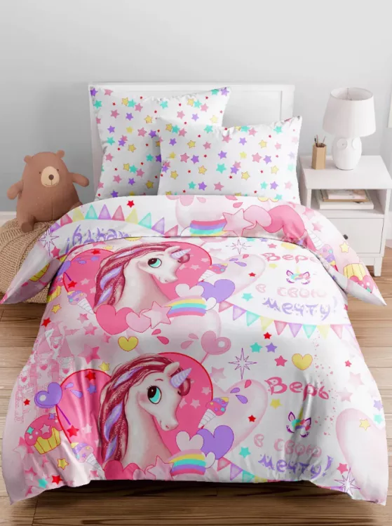 "Василек" Комплект постельного белья "Единорог" 1,5сп, 70х70см, поплин